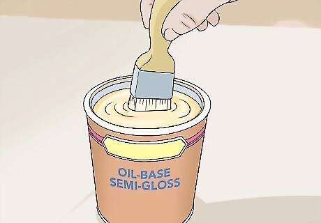 Choose an oil-based, semi-gloss paint. Oil-based paint is recommended for skirting boards because, even though it has a longer dry time, its thick consistency ensures that it will fill cracks and divots in skirting board detailing and hold up against wear for a long time. Avoid using flat emulsion to paint, as this will result in skirting boards that can easily be marked up. In terms of gloss, go with semi-gloss paint (also sometimes called satin). Skirting boards are meant to be decorative, and semi-gloss paint will result in smoother, more reflective, and more attractive skirting boards.