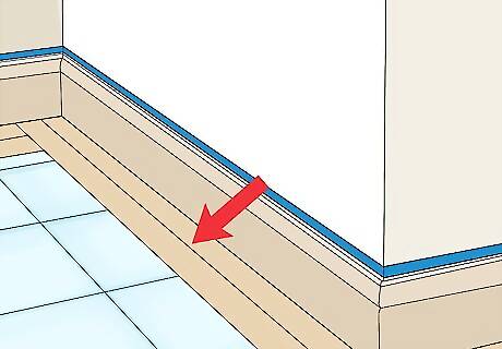 Cover the area where the wall meets the skirting board with masking tape. Gently press 5 cm (2.0 in) masking tape (also called blue or painter’s tape) on the wall just above the skirting board. That way, if your brush accidentally veers off the skirting board, your wall will be protected.