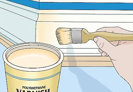 Brush on polyurethane varnish. This step is optional, but polyurethane varnish helps skirting boards hold up longer against scratches and scuff marks. This is recommended if you are painting the skirting boards in a house that will have small children or pets. Repeat the same process that you used for priming when applying varnish. Check the packaging of your varnish for specific dry times, and wait until it’s completely dried before moving furniture back up against the skirting boards.