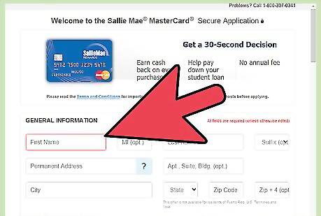 Fill out all required fields on the form to apply for a Sallie Mae MasterCard. You will be required to provide your name, address, employment and financial information, security information, and more.