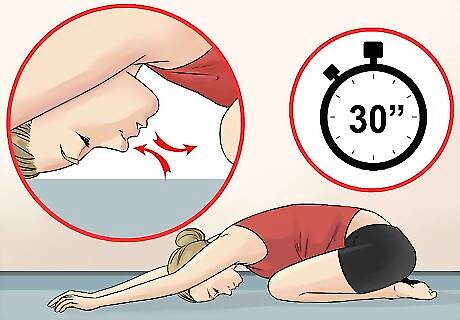 Relax in child’s pose. Monitor your breathing and focus on silence for 30 seconds.