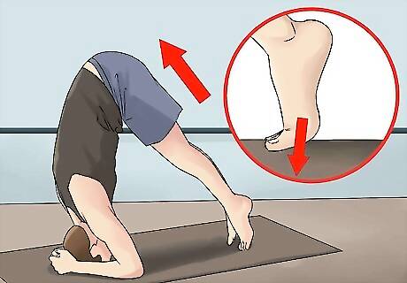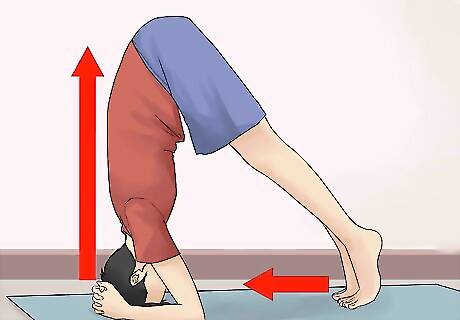 Plant the balls of your feet into the ground and push so your knees extend up away from the ground and your body is lifted into the air. (Your body should form an upside down V).