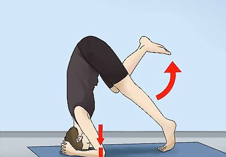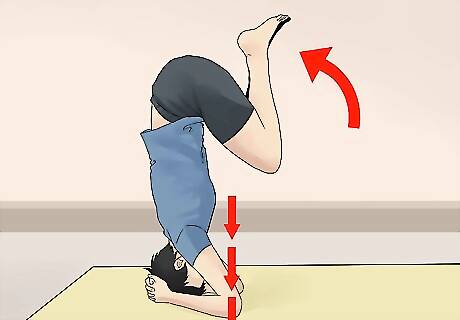Continue lifting up your thighs until they are directly above your abdomen. Your elbows should hold a majority of the weight of your body, not your head or neck.