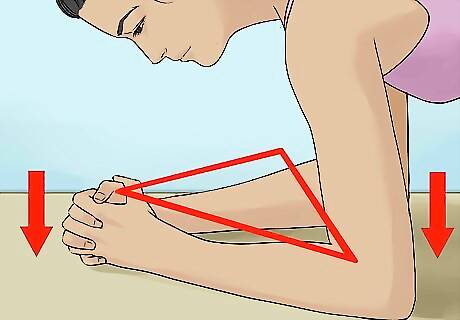 Bring your hands together and interlock the fingers. Your elbows and hands should form a triangle.