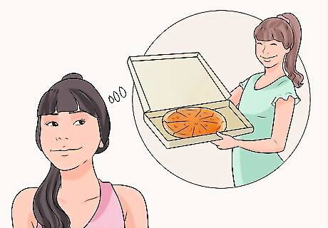 Decide on what you are serving at the party. Have plenty of snacks, as well as dinner. You could also have dessert, if you want. You'll also need to include breakfast foods for the following morning. Good slumber party foods include: Pizzas, hamburgers, pasta, fries, takeout, etc. You could go for more exiting foods as well such as: coke floats, pop tarts and other things that will be fun! For dessert: Cheesecake, ice cream, chocolate anything, fruit pie, etc. Snacks might include: Dips and chips, candies, fondues (cheese or chocolate), brownies, cupcakes, etc. Drinks might include: Sparkling water, sodas in different flavors, juice, plain water and hot chocolates. Keep in mind the possibility that some of the girls might have food allergies or foods they don't like. Ask them the menu to make it clear when they RSVP that they have any such issues. Suggest some of your guests bring snacks too! (You could have a midnight feast.)