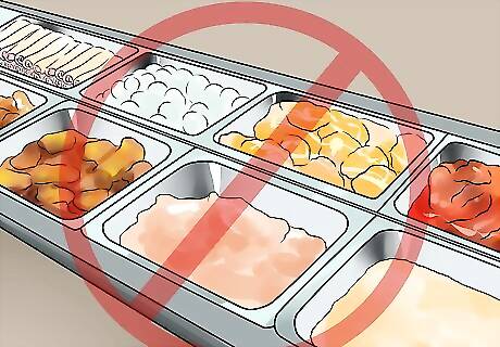 Plan a sit-down dinner where guests are served. Sit-down dinners with each guest served a plate, rather than buffet style, is less expensive. This way, you can ensure that guests will not eat more than one portion, thus saving you money overall.