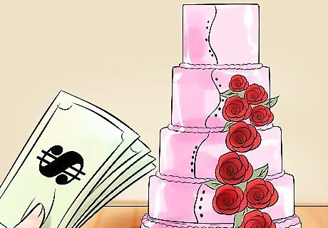 Make a budget and stick to it. Set a total dollar amount that you and your partner are willing to spend. Be firm about sticking to that total amount (or go under it). You will inevitably find more fees and costs that you did not anticipate, so be sure to think through what you need to spend money on. Aim to spend about half your budget on the venue, food and beverages. Periodically review your budget as you plan. Of course you want to stay firm to your budget. But planning a wedding will mean you will have to adjust as you find out more information as you go along. Some expenses may be more expensive, or some things less so, or maybe you get help from friends and parents.
