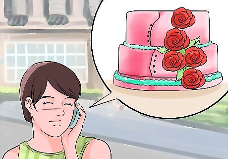 Ask a friend to make your wedding cake. If you have a friend who is a skilled baker, ask them to bake your wedding cake. It does not need to be a multi-tiered cake; in fact, the fancy wedding cake is usually only eaten by the wedding party. In reality, guests are usually served from a sheet cake in the kitchen. Ask if a friend can bake several large cakes and decorate one cake with a fancy look.