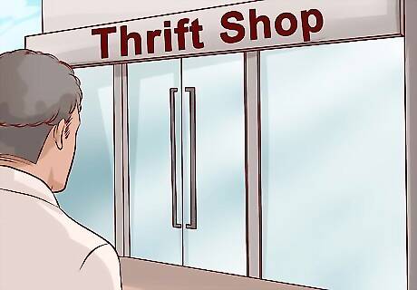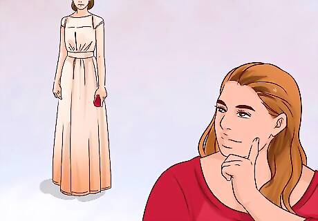 Wear a hand-me-down gown. Increasingly, women are choosing to sell their used wedding gowns rather than save them forever. It may make more sense to buy and pass on. By doing so, you can save thousands of dollars. A talented seamstress can usually do alterations to fit your properly and styling options. You may have dreams of having your daughter wear your gown, especially if it was expensive and you want to justify the cost. But you likely do not know if you will have a girl, that she will get married, will be a similar size, and would want to wear your dress simply because what is in fashion today may be tacky or hideous in twenty years. Check out websites such as Craigslist.org to find used wedding dresses. Some stores have pre-owned wedding dresses too, which are gently used dresses and which can cost as low as $100. When you consider that the average wedding dress is only worn once for a few hours, it can make a lot of sense to get one that is used. There are some stores which accept wedding dress donations and then sell those dresses at a steep discount, donating the money made to a charity or cause.