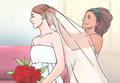 Keep the bridal party small. All that is required is the happy couple and the person officiating the ceremony. You do not actually need twelve bridesmaids and groomsmen, a flower girl and a ring bearer. Perhaps you can choose just one attendant each for the bride and groom will cut down on costs--and really, these are still optional.