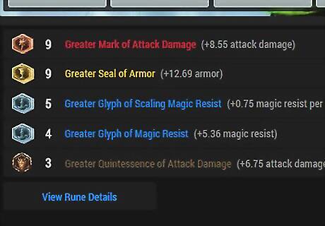 For runes, use Marks of attack damage, Seals of armour, Glyphs of magic resist and Quintessences of attack damage.