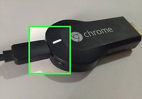 Power the Chromecast. Grab the supplied USB power cord of your Chromecast, and insert the USB mini end into the rear of the Chromecast then insert the wider USB2.0 end into the USB port behind your TV. If your TV does not come with a USB port, you can use the supplied Chromecast power adapter to plug the USB power cord into, and then plug the adapter into a wall outlet.