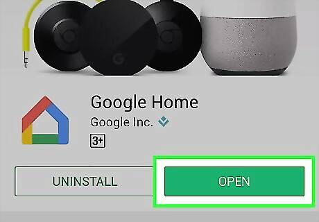 Launch the Chromecast app on your Android device. Open that Chromecast app by tapping the Chromecast icon in the app drawer or home screen; it looks like a blue outline of a TV screen with a Wi-Fi icon in the lower left corner.
