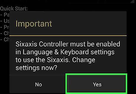 Enable the app in Language & Input. The app will then notify you that you have to enable it as an input app by tapping the “Enable” button in the pop-up that will appear. You will be taken to the Language & Input settings menu of your device, where you can tap the toggle button opposite Sixaxis Controller in the list. Tap “OK” in the notification pop-up that will appear, and then press the Back button to get back to the Sixaxis app.