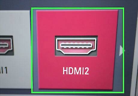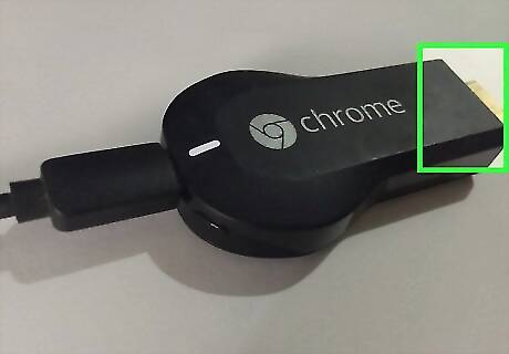 Plug the Chromecast into the TV. Look behind your HDTV to find an HDMI port. Insert the Chromecast into the HDMI port, and note the port number (as most TVs include two HDMI ports).