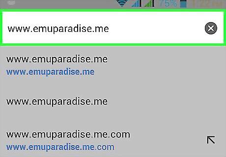 Head to the download site. On your favorite Android device browser, head to a site that hosts digital copies of old games, such as Emuparadise.me, Theisozone.com, or coolrom.com, by typing it on the address bar and tapping Enter on your on-screen keyboard.