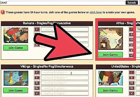 Choose an online Risk site to sign up for. There are over a dozen Risk playing sites available and they all differ in quality and experience. You can find reviews and ratings of online Risk sites at Play Risk Online
