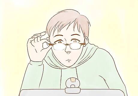 Be aware of what glasses will do. There might be reflection off of them, but if you need them, go ahead and wear them. Try putting the light off to one side if you see a lot of reflection or glare.
