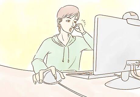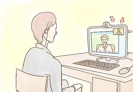 Wear clothes that are comfortable but suited to an interview. Try on your intended outfit and let the camera run, so you can see if anything looks strange. Although it may be tempting to interview in a blazer, dress shirt, and shorts, think twice about leaving out the bottom half of your wardrobe. You might have to get up to go get something (in which case the interviewer might see your legs). Being fully dressed, including shoes, may also come across in your voice and manner. Don't wear busy prints. Avoid anything bright, checked, striped or with a herringbone pattern. Such patterns could transmit strangely and cause a distraction. Don't wear bright white for a shirt or blouse. It will overpower the screen and your appearance.