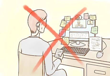 Choose a neutral, uncluttered background. No matter how good you look, if the background looks bad, it will reflect poorly on you. If anything but a plain wall must be in the frame, make sure that it looks tidy and appropriate. Move your camera or computer as needed to avoid showing off that poster of your favorite rock band.