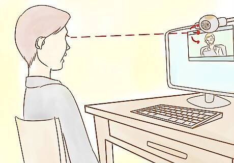 Arrange the camera and windows so that the parts of your screen where you will be looking are as close as possible to one another. The idea is to look into the camera, or at least look like you are. If you are looking at a video window or reference material on your screen, you may be looking up or down, past the camera.