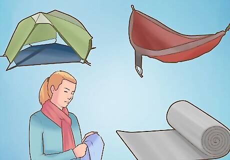 Gather sleeping gear. If you are doing a multi-day or thru-hike, you sleep in either a tent or a shelter along the trail. Collecting your sleeping gear in advance can ensure that you stay warm and comfy at night after a long day of hiking. Consider getting all of some of the following items for comfortable sleeping: Tent or hammock Tent footprint or tarp to prevent tearing or holes at the base of the tent Climate-appropriate sleeping bag Silk sleeping bag liner for added warmth and cleanliness Sleeping mat for comfort and keeping you warm against the ground