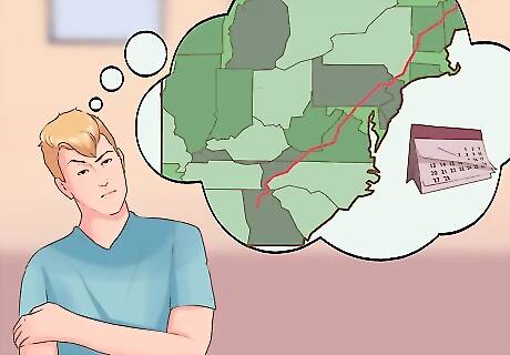 Have a contingency plan. Weather and other emergencies can force you to alter your plans to hike on the Appalachian Trail. Having an alternative plan for your hike can prevent mishaps and injuries as well as allow you to enjoy the trail even if conditions are optimal. Think about the time of year you are planning to hike. The East Coast is prone to extreme changes in weather and your hike may encounter floods, mud, snow, or even insect plagues. You might consider changing the section you hike or direction of your route depending on the time of year. Make sure your contingency plan includes what to do in case of a physical emergency such as a leg or arm break or a serious case of the flu.