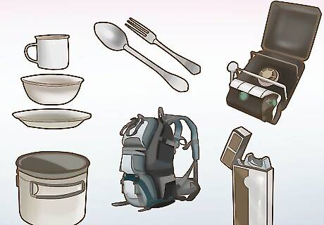 Include cooking gear. If you plan to cook on multi-day or thru-hikes, you’ll need gear with which to cook your meals. You may have cooking gear or may need to buy some, which you can get at a local outdoor store. You should have the following items to cook any food on the Appalachian Trail: Multi-fuel camping stove Fuel Matches or a lighter Cookware including a lightweight pot, pan, and lid Plate, mug, bowl; remember that you can always use a mug as a bowl to cut down on weight Utensils Dish soap and sponge, though many people just use water