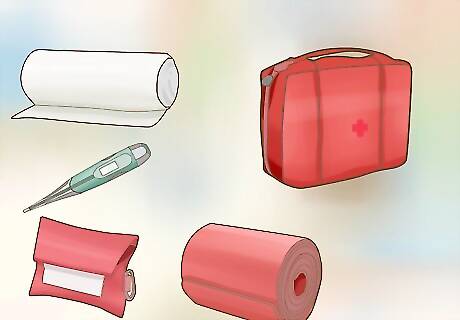 Carry a first aid kit. No matter how long you’re hiking, you could have an accident, emergency, or other problem. Pack yourself a well-stocked first aid kit to handle small injuries or deal with other accidents until emergency personnel arrives. Some items your first aid kit should include are: Latex or nitrile gloves CPR microshield mask Multi-use tool or knife Tweezers Scissors Thermometer Malleable splint Irrigation syringe to flush and clean wounds Safety pins Cotton swabs Bandages and sterile dressing pads Anti-septic towelettes Cleansing pads with lidocaine Antibiotic ointment Moleskin Sunscreen Aloe vera gel packets Oral rehydration salts Pain reliever Antihistamines Anti-diarrheal Paper and pencil to note symptoms and medications or aid administered List of your medications and any health conditions such as diabetes