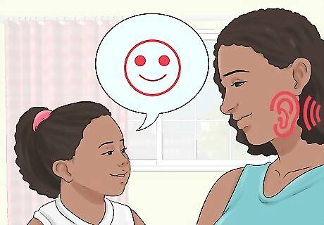 Listen to your child. Encourage your child to express their thoughts and feelings. This shows that your child's thoughts and feelings are valuable. Your child may not immediately offer up information, so ask questions. Say, “What do you think about going to preschool?” or say, “You're starting preschool tomorrow. How does your body feel?” Give them a vocabulary to use to label feelings by naming them for them. Say, “You look disappointed that you didn't get a star today. What happened?”You can also say, “Wow, I can tell you had a good day today, you look very happy!” This will help them talk about their own feelings and express them to you.