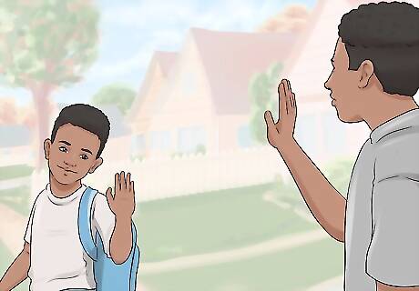 Develop a goodbye ritual. Have something you do with your child each time you leave them at preschool. This could be a special hug or high-five and a phrase such as “See you later, alligator! After a while, crocodile.” Be consistent and make a point to say goodbye. The ritual can comfort your child and make them feel special. Resist the urge to run back and rescue your child if you hear them crying or screaming. Going back for your child sends the message that they are safe only if you are there. This can prolong their distress. Trust the teacher's years of experience to calm your child.