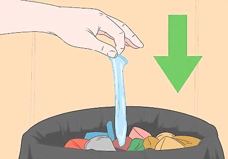 Take off a condom correctly directly after sex. Once you are done, hold the condom at the base while you are pulling out of the other person. That way, the condom won't come off as you're trying to pull out. Once you're out, take the condom off and throw it in the trash.