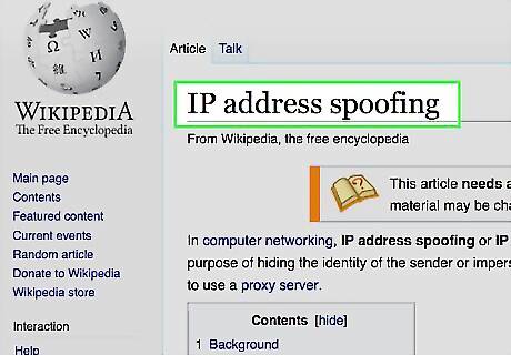Understand the risks. If you are not familiar with the term, IP spoofing denominates a practice of using different types of software to change the source or destination information in the header of the IP packets. Since these packets are sent through a connectionless network (packets in connectionless networks are also known as datagrams), they can be sent without a handshake with the recipient, which makes them convenient for manipulation. Number of ways to abuse IP or TCP spoofing (the latter mostly being a non-issue these days) kept decreasing with improvements in the overall online security, development of new protocols and increase in user awareness, but there are still people who use this for nefarious purposes. The most common abuses of IP spoofing today revolve around: IP user authentication based exploits – where the intruder impersonates the IP of the internal network they are trying to penetrate. Denial-of-service attacks – either direct where the attacker modifies the destination in the IP packets, sending them to the target address; or indirect, where the attacker sends out requests to different reflectors or amplificators, with the IP’s header forged so as to imply that the target site is the source of the packet. This is usually sent to a number of different reflectors/amplificators, which all reply to the target site, sometimes with a response which is much larger than the request itself.
