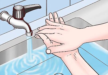 Wash your hands after handling a ringworm-infected dog. Ringworm is zoonotic, which means that the condition can be transferred to human beings. In order to prevent yourself from contracting ringworm, wash your hands for 30 seconds with soap and water after handling a dog that is—or that may be—infected with ringworm. If you know that you’re going to be touching a dog that has ringworm (e.g., to take it for a walk or to put on its medicated shampoo), put on a pair of gloves to keep your hands fungus-free. Young children, the elderly and the ill are more susceptible to transmission of ringworm from pets.