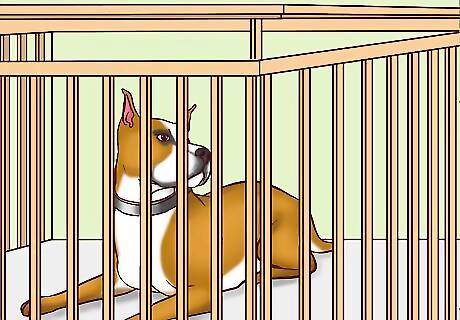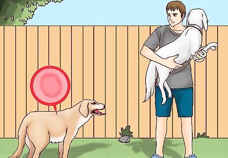 Quarantine your dog for 6 weeks to prevent transmission. If your dog has been infected with ringworm, keep it quarantined from other dogs. Keep the dog home from doggy daycare, don’t take it to dog shows, and don’t let your dog spend time with the neighbors’ dogs. Quarantining your infected pup will prevent other dogs from catching the illness and prevent a neighborhood-wide outbreak. This works the other way around; if your neighbor’s dogs have been infected, keep your dog well away for 6 weeks after treatment. If your neighbor’s pets have ringworm, talk to your neighbor about preventing contact with your pets. If your pup does have ringworm, try to keep the dog only in rooms that are easy to clean. This will minimize environmental contamination if an infection does start.
