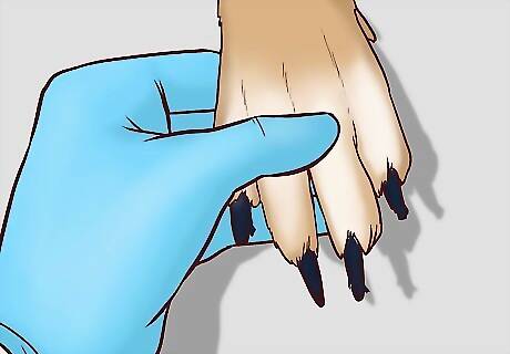 Check your dog’s claws to see if they are brittle and rough. While ringworm typically infects dogs’ skin, it can also spread to its feet. The main symptom of infected feet is seen in the claws, which become brittle and may snap off as the dog walks through your home. The claws also become very rough to the touch, as the outer layer of material peels off. Hair around the infected foot also turns brittle and breaks off easily.
