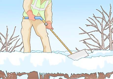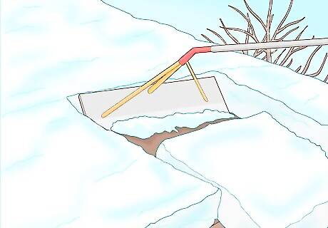 Use a roof rake to remove snow before it has a chance to freeze. Purchase a long-handled aluminum roof rake, preferably with wheels or a non-stick graphite blade. To use the rake, pull the snow toward the edge of your roof. If you push the snow across the roof, you could end up damaging the shingles. Repeat the process after every snowfall to keep the roof clear of ice dams. Stick with long-handled brooms so you can reach up on the roof without having to climb a ladder. You could also use a soft-bristled push broom to sweep off the snow. You can get roof rakes, along with ice melters and other supplies, online or at most hardware stores.