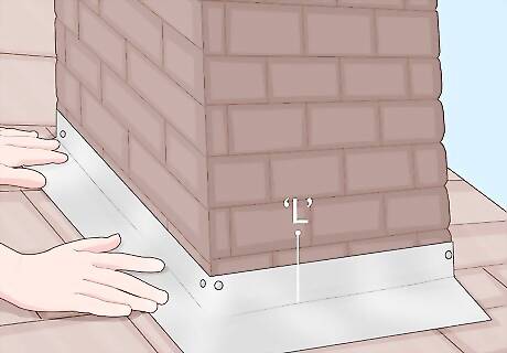 Install waterproof flashings if your chimney is leaking. Chimneys are common sources of water leaks, meaning that escaping heat could be melting snow there. To fix this, you will need to purchase L-shaped steel flashings that fit snugly against the chimney and the roof. Remove the old flashings if you have had any installed in the past. Spread a fire-resistant sealant to hold the new ones in place, then nail them to the roof. Installing flashing is somewhat difficult if you’re unfamiliar with how to do it. You need to measure the angle formed by the roof and chimney, then cut or order metal pieces that fit. Consider hiring a professional installer to keep your roof safe. The installation process can be dangerous. While on top of your home, wear a safety harness anchored to the roof.