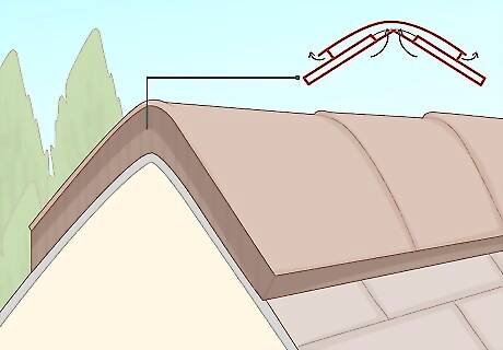 Add a ridge vent strip to the roof’s peak if you don’t already have one. Ventilation holes direct warm air out so that the roof stays at a consistent temperature. A ridge vent runs across the entire length of the roof. It is then covered with a vent strip nailed in place and covered with new shingles. While you can get all the supplies you need from a hardware store, it’s usually better to let a professional roof installer do the work. Keep in mind that many roofs are difficult to vent. If your roof is flat or has skylights, for instance, you may need to find another strategy.