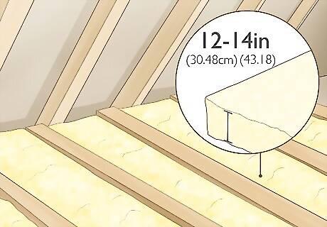 Add thicker insulation to prevent the roof from getting warm. Attics need a layer of insulation between 12 to 14 in (30 to 36 cm) thick. Pull back the insulation and measure it. If it’s too thin, purchase fiberglass or cellulose, then pack it between the rafters in your attic. Use a blowing machine, which is often free to rent when you purchase insulation from a hardware store. Insulation is irritating, so protect yourself by covering up. In addition to a long-sleeved shirt, long pants, and work gloves, wear eye goggles and a dust mask.