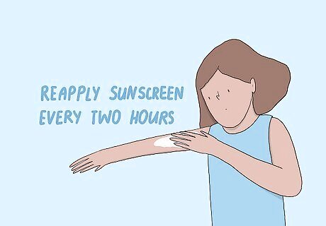 Use at least an SPF 30, broad-based sunscreen every time you go out in the sun. Apply a thick layer on every part of your skin that will be exposed to the sun, including your face and neck. Apply the sunscreen about 30 minutes before you go outside for the best protection. If you’re wearing sandals or flip flops, remember to put sunscreen on your feet as well. You could get sunburned through the holes in the sandals. Always check the expiration date on the sunscreen you use and replace it if it’s out of date.