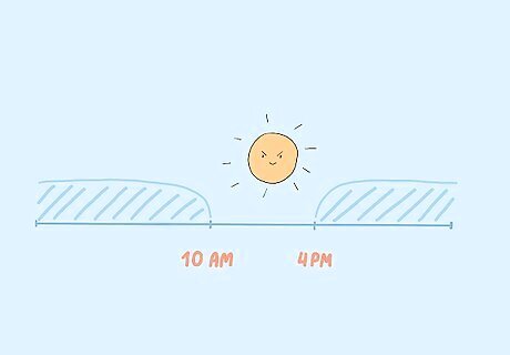 It’s best to avoid prolonged sunlight altogether during the brightest parts of the day. In most places, this is between 10 AM and 4 PM. Try to schedule your outdoor activities before or after this time block so the sun isn’t as strong. If you have to be outside during the brightest parts of the day, stay in the shade as much as possible to protect your skin. It’s fine to go outside during these times, so don’t stay locked inside. Just avoid activities where you’ll experience prolonged sunlight, like tanning or outdoor sports.