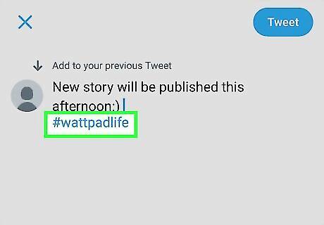 Use hashtags in your Tweets. If you use hashtags, chances are your story will be viewed by someone searching "#wattpad life".