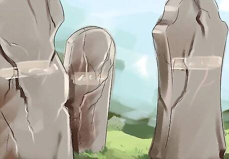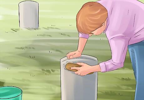 Clean and complete basic repairs on sound markers. Provided the stone is sound, many grave markers can be cleaned gently by hand without need for any training in specialized techniques. Don't sandblast the gravestones or use excessive water pressure to clean them. Many markers can be cleaned by brushing it off with a soft-bristled brush, then wetting it with warm water and brushing some more. You can use a mixture of one part ammonia and four parts water to clean the stones, but don't use any other cleaners or abrasive materials, as they can further weaken and damage the stone. If a particular marker doesn't respond well to gentle cleaning, cease efforts and consult a professional. Potential delays to the project are better than causing additional damage.
