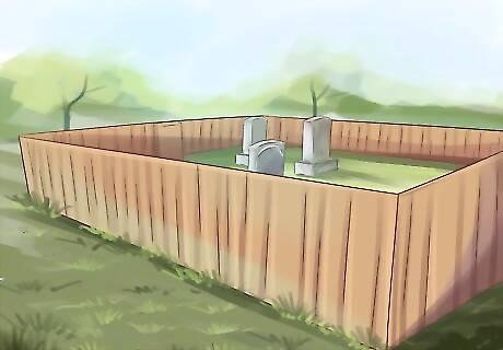 Get permission to conduct preservation efforts. Unless the cemetery is located on your private property, you will have to get permission from the owner of the land or from the government before you take steps to preserve it. Many historic cemeteries are on land controlled by state or local governments. You must obtain written permission from the government with jurisdiction over the area before you can begin your efforts to protect and preserve the historic cemetery. In some states and localities, cemeteries are governed by cemetery associations. Not only must you get permission from the association, but you also should become familiar with the association's rules and regulations so you don't run afoul of any restrictions while attempting to preserve the site. If the cemetery is only accessible through private land, you'll have to negotiate access with the landowner before going any further.