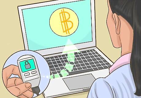 Use two-factor identification with online storage. With two-factor identification, you must verify your identity through another device before your wallet can be accessed or a transaction completed. This typically involves the wallet service sending you a code. The service typically sends a code to your mobile phone in a text message. You have a few minutes to enter the code before it expires. When you set up two-factor identification, make sure the code is being sent to a device that you always have access to, and that no one else routinely uses.