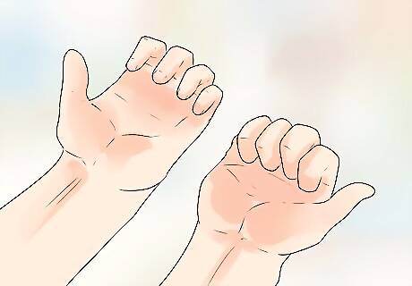 Keep stiff joints moving. When it comes to your joints, in most cases “stiffness begets stiffness.” In other words, completely immobilizing a stiff joint is likely to only increase the discomfort. Instead, try to slowly but surely flex and move the stiff joints to loosen them up. For instance, if your fingers are beginning to feel stiff from gripping a racket during a long tennis match, try the “finger fan.” Spread your fingers out as wide as you comfortably can, hold for a moment, clench your hand into a fist, hold again, and repeat. Or, try the “wrist flex” if that is the sore joint. Rest your elbow and arm flat on the desk, palm down, and gently pull back on your hand (toward your elbow) with your other hand.