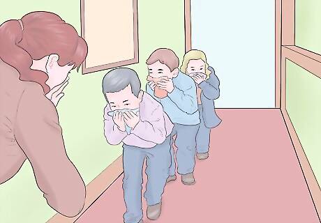 Create rules. Rule lists can be used in a variety of ways to promote a safe environment at preschool. Post school rules clearly where are preschoolers can see them, and be sure to address them on a regular basis so that the children are familiar with them. For example, rules like "keep your hands to yourself" and "tell the teacher if you have a problem with another student" can help prevent physically harmful arguments in the preschool environment, and rules about washing hands and covering sneezes can help prevent the spread of illness. Establish a set of rules for picking up and dropping off preschoolers. For example, you may require parents to provide photo IDs, fill out forms for other parties they wish to pick up their children, sign in and out, stay inside a pickup zone during pickup time and/or call ahead of time if the pickup method is to temporarily change.