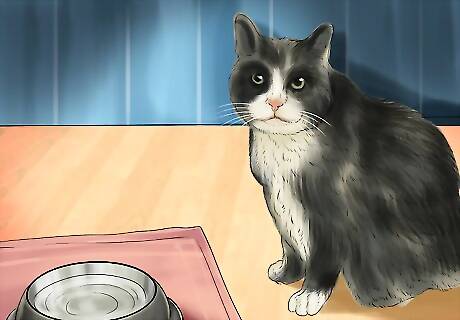Place shallow dishes of water by inappropriate spots. You can also deter your kitty from resting on inappropriate spots by placing shallow dishes of water by these areas. Cats usually don’t like being close to water or stepping in water. The dishes of water can prevent them from climbing or resting on spots you want to keep cat-free. Be careful when trying this option because your cat may accidentally knock over the water, which could damage whatever is on or under the shelf or ledge. This is especially true if your cat can't easily see the bowl. You can also try spraying your cat lightly with a spray bottle when they are on surfaces you don’t want them to be on. However, only do so lightly and intermittently. Over time, your cat will likely learn not to go on spots where they are going to get sprayed.