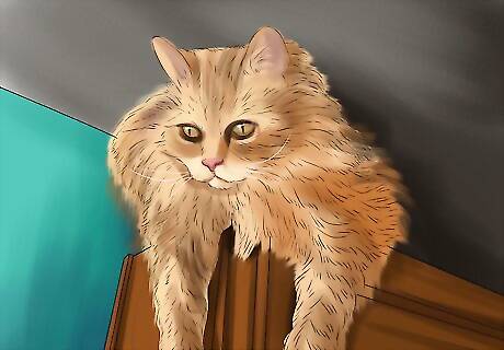 Get your cat to go on their climbing post instead. Try to encourage your cat to climb or rest on their climbing post instead of inappropriate spots in your home. Place treats on their climbing post so they go to there instead. Pet your cat when they are on their climbing post so they know it is a good spot to be.